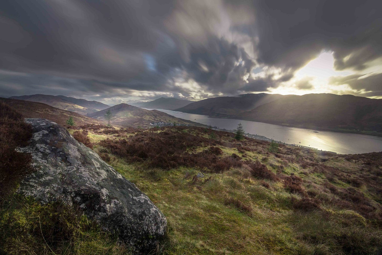 Al final, poco a poco, la lluvia cesó. Lo que había sido un torrencial se transformó en un cielo azulado, con algunas nubes coronando el Ben Nevis y las montañas de alrededor. La visión era un espectáculo. El silencio, abrumador.