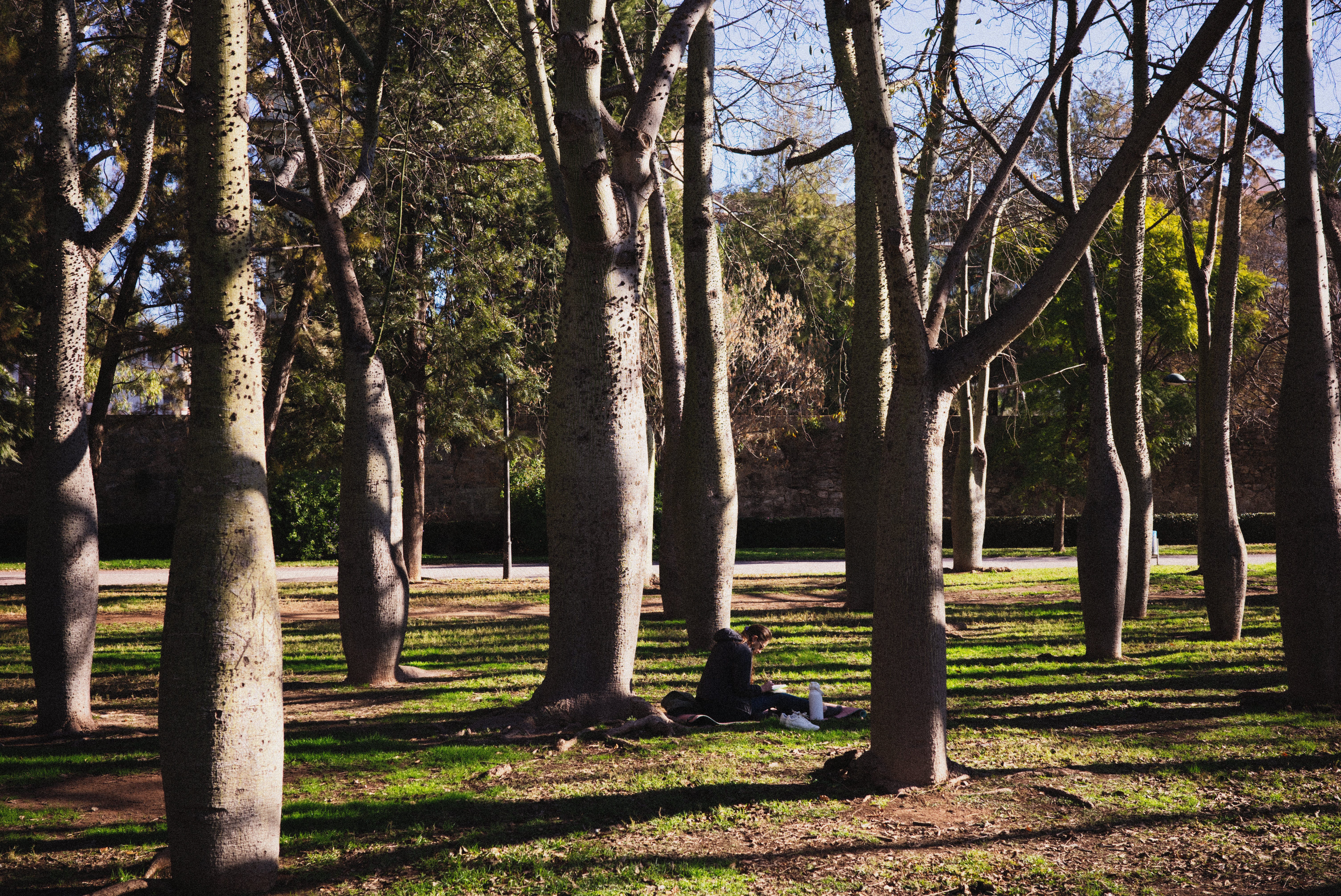 Alguien en una hamaca, colgada entre dos árboles borrachos.